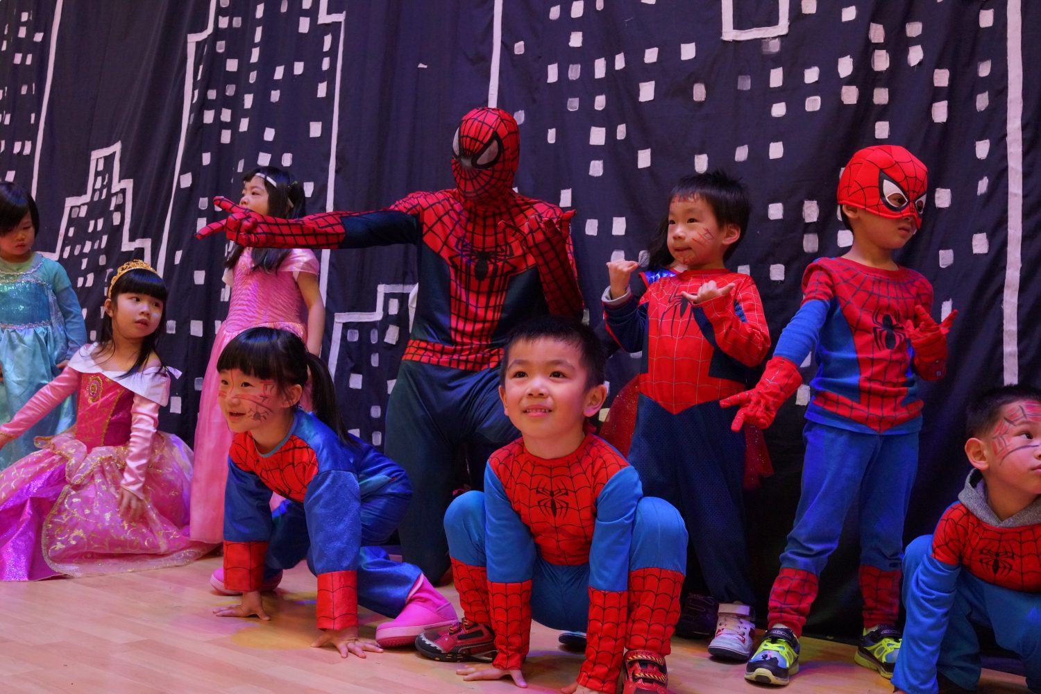 Spiderman makes a grand crawling entrance, gives birthday boy/girl a big hug and wishes them a Happy Birthday! Spiderman gives all kids a high five and invite them to dance to their favourite party songs! Kids take party in Spiderman adventures by learning to to jump, crawl and run. Spiderman teaches his martial arts and of course his awesome dance moves. The Spiderman Entertainment program is presented with light effects and Spiderman themed music. Parents are welcome to watch our ultimate Spierman show and make memorable photos!